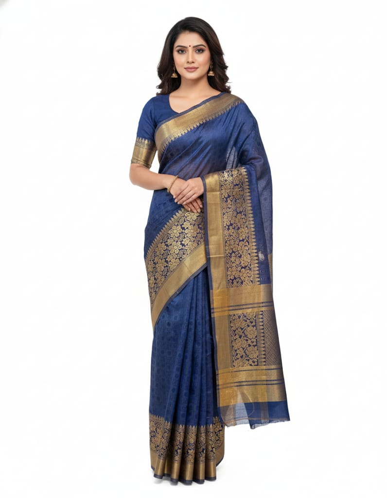 Zari woven premium silk saree with butta design and beautiful border Bright Blue