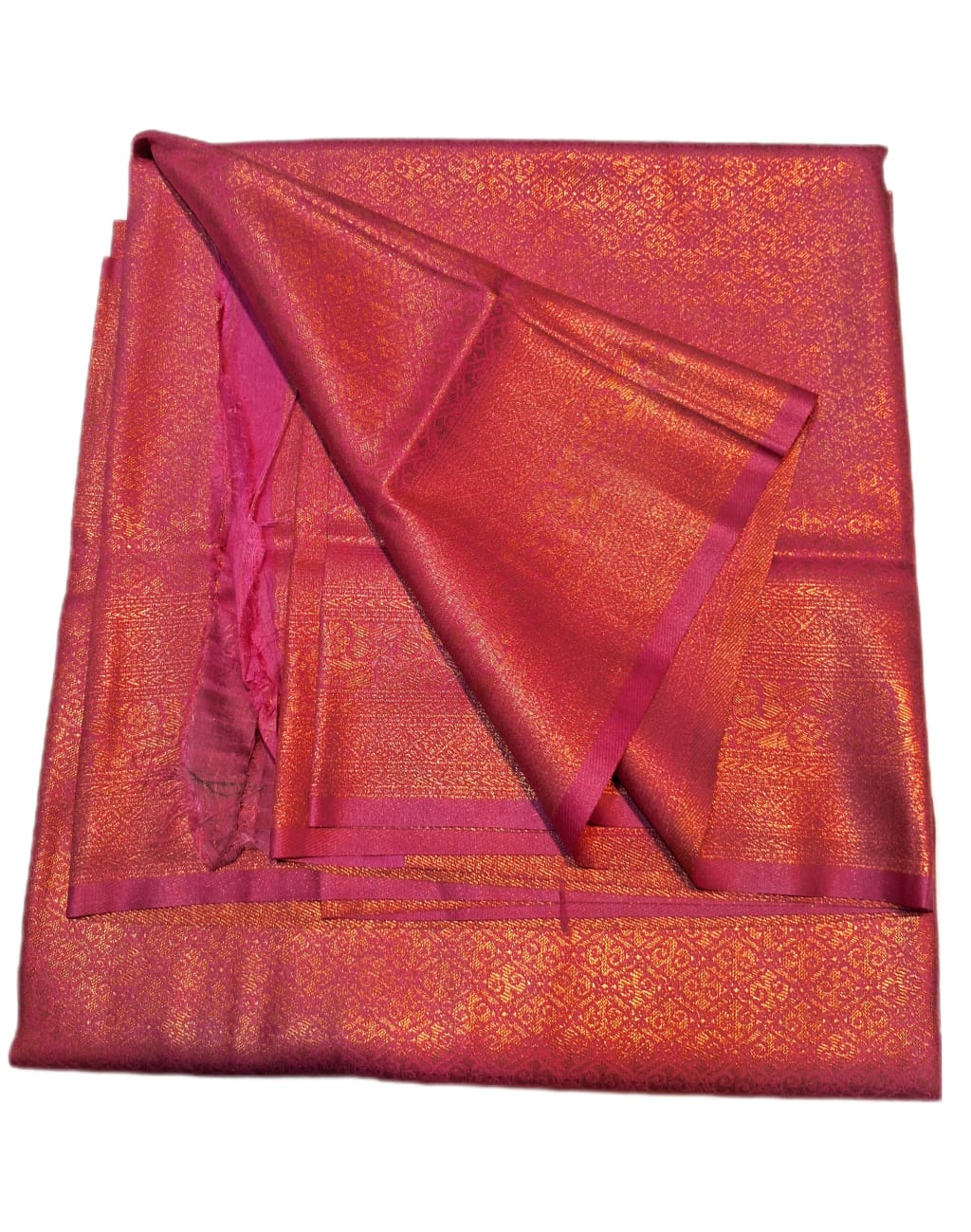 Beautiful soft satin silk saree with zari woven motifs and heavy pallu and border Brownish pink