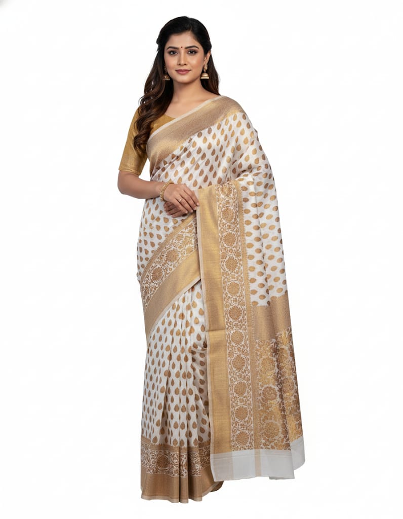 Zari woven premium silk saree with butta design and beautiful border Sandal and Peach colour