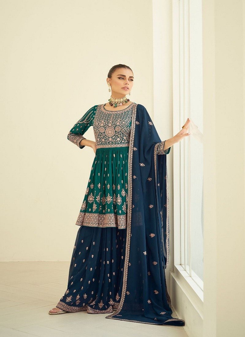 Premium viscose chinon long anarkali partywear gown with duppatta Green Blue M