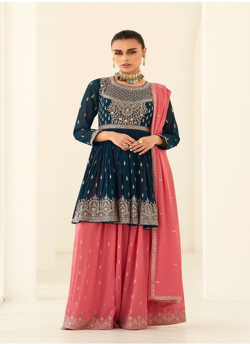 Heavy partywear georgette lehenga with sequence work Multicolour