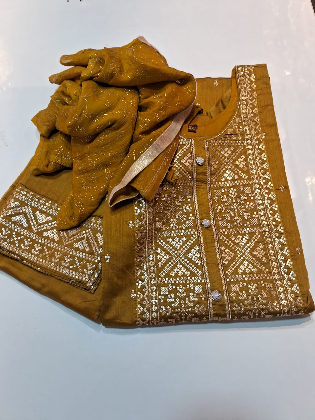 Silk suit mehendi colour size XXL