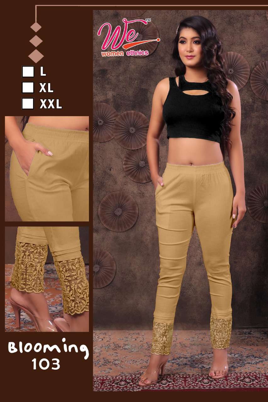 Strechable cigar pant with lace work XL Golden